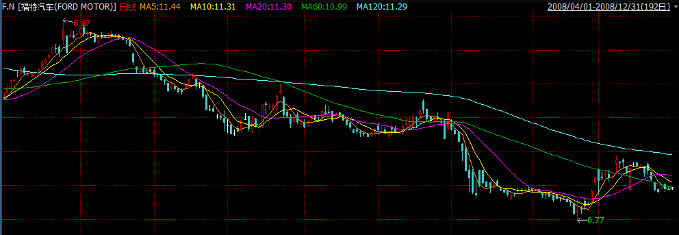 福特汽车股价走势(2008年4月至12月)