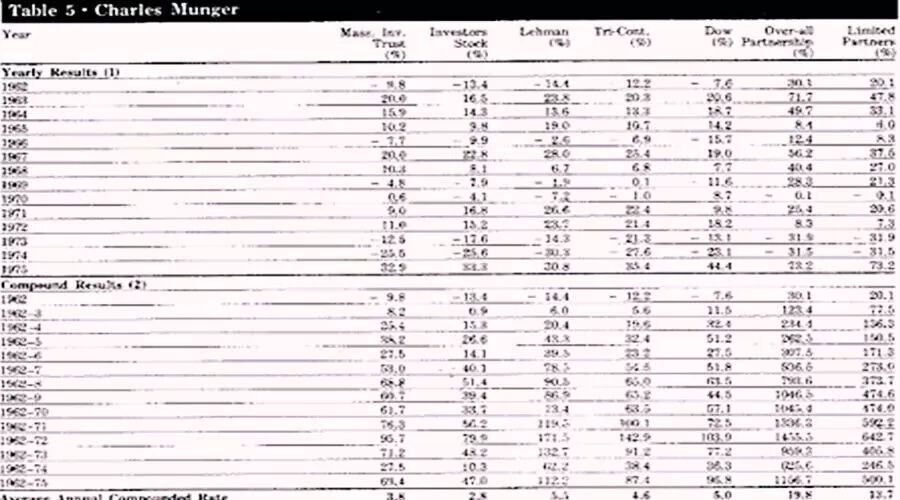 他的搭档芒格也很强悍,在1962-1975年间,他的合伙公司年报回率达19.8%,同期标普只有5.3%的回报,