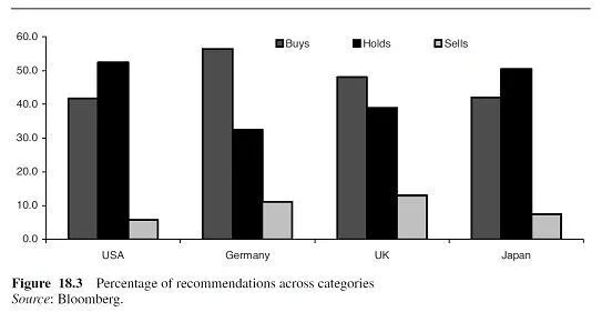 有些先验的例子可以帮助我们认定买方分析师应该比卖方分析师有更少偏见。例如,他们与企业的投融资工作没有利益冲突的问题,他们通常不太担心与上市公司的关系,因为他们可以使用他们的资产作为激励管理层与他们会面的一种手段,他们的投资建议不会公开。