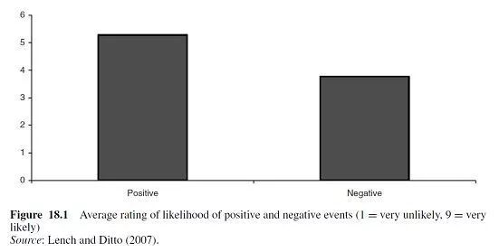 在他们的第一个实验中,Lench和Ditto给参与者一系列的未来生活场景。每个人都被分配了一个基于经验证据的概率,这些证据来自于与参与者类似的群体(至少参与者是这样被告知的)。然后,他们被要求从1(非常不可能)到9(非常可能)对他们自己遇到这种场景的可能性进行打分(图18.1)。