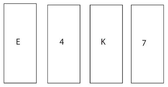 大多数人选择E和4。正确答案是E和7。如果你把E翻过来,它后面没有4,你就证明了我在撒谎。如果你把7翻过来,背面有个E,你就证明我在撒谎。不幸的是,这4个不能告诉你任何东西。我说E后面有4,不是说4后面有E。选择4的倾向被称为验证性偏差,即倾向于寻找与我们一致的信息,而不是寻找可能表明我们错了的信息。