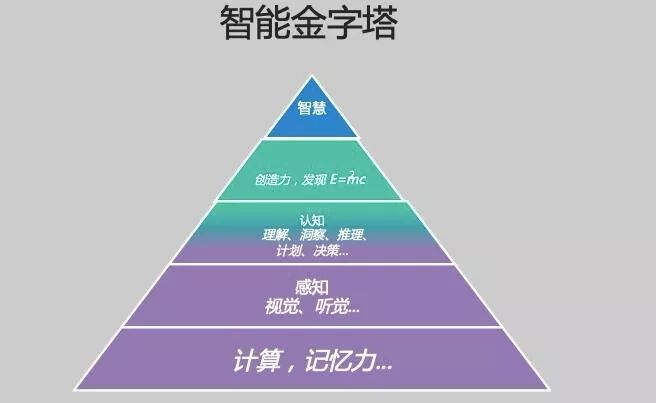 我做过一个智能金字塔,最底层的是计算、记忆力,计算机完胜人类;感知、视觉、听觉是人最基本的功能,计算机的视觉、自然语言处理、自然语言认知已经跟人类差不多;再往上,计划、决策也是计算机的长项,比如一场暴雨让机场瘫痪,以前要花十几个小时调度,现在智能化系统两个小时就能让机场进出正常。
