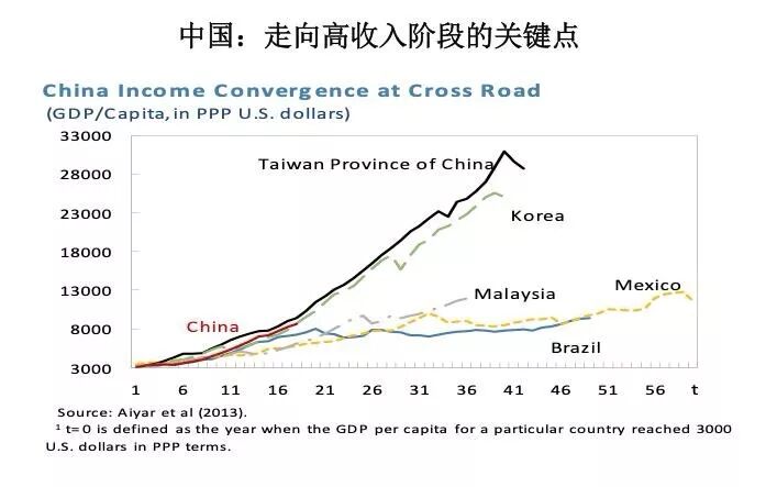 但从另一方面来说,这个节点十分关键。历史往往在到达人均GDP 10000美元的时候开始分叉:如果能跨过这个点继续增长,就能进入韩国、台湾省的轨道,成为高速发展的国家;如果跨不过这个点,就会跌入中等收入陷阱,像马来西亚、墨西哥、巴西等国家,人均GDP在达到10000美元之后的50年内都没再发生变化。