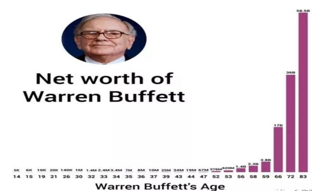从这张图大家可以看到,巴菲特的财富90%以上是在他60岁之后获得的,60岁之前的增长非常平缓。这就是复利的魔方。所以巴菲特有句话说得非常妙,他说,“时间的妙处在于它的长度”。