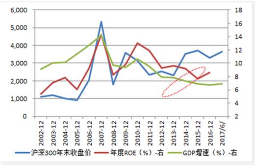 刚才王庆总对利率做了十分深入的分析,根据我们所掌握的从2002年到现在的数据,从大类资产配置的角度讲,站在目前的时点看股票的投资机会、潜在价值和债券的比较。万得全A目前是20.6倍的平均市盈率,市盈率的倒数可以看作股票的长期潜在分红收益率,下图中(图4)蓝色线是万得全A潜在的分红收益率,红色线是10年期国债收益率。蓝线是高于红线的,红线在过去10多年的均值附近,我们分析了10多年的长周期。短期看股票不如13、14年那么便宜,没准短期我们会有些风险;长周期来看,中国的无风险收益率、国债再往上走的可能性比较小,上市公司的盈利能力还会不断提高,换句话,红线可能往下走,不考虑股价上涨蓝线会逐步缓慢的往上走。站在大类资产配置的角度,从现在为起点考虑未来10年,其实股票也是一种不赖的投资选择,未来10年可能是比一线房价更好的投资市场。