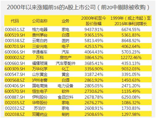 从长周期看,这是A股过去十多年的牛股,把被收购的、买壳的剔除掉,这些公司列在一起,股价的上涨和业绩上涨完全匹配(图10)。作为一般投资者,认认真真分析这些,业绩,就OK了,不要考虑那么多其他很难把握的东西。