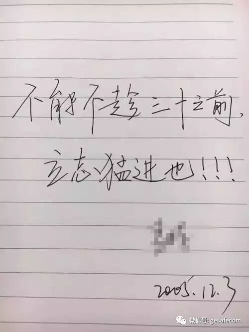 前段时间整理书柜,偶然间翻开了一本大一时的笔记本,本上落了灰,纸也已经泛黄。扉页上写着:“不能不趁三十之前立志猛进也!”后边是自己的签名和时间:2005年12月3日。
